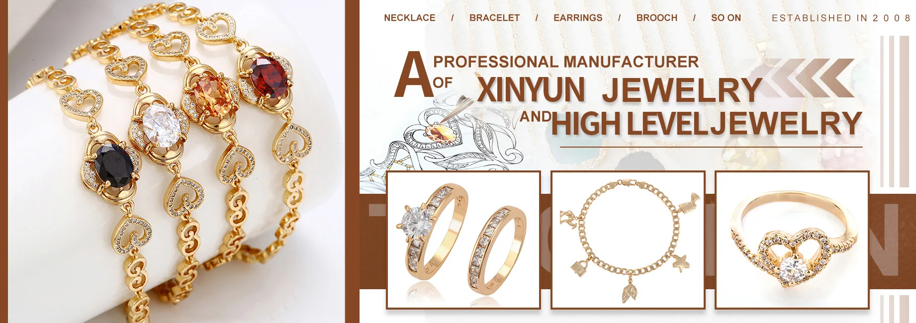 Company name: Xinyun Jewelry Co., LTD Located in Guangzhou, with 16 years of experience in jewelry production, we have been committed to the design and production of silver jewelry, brass jewelry, K gold jewelry, the main products of rings, pendants,