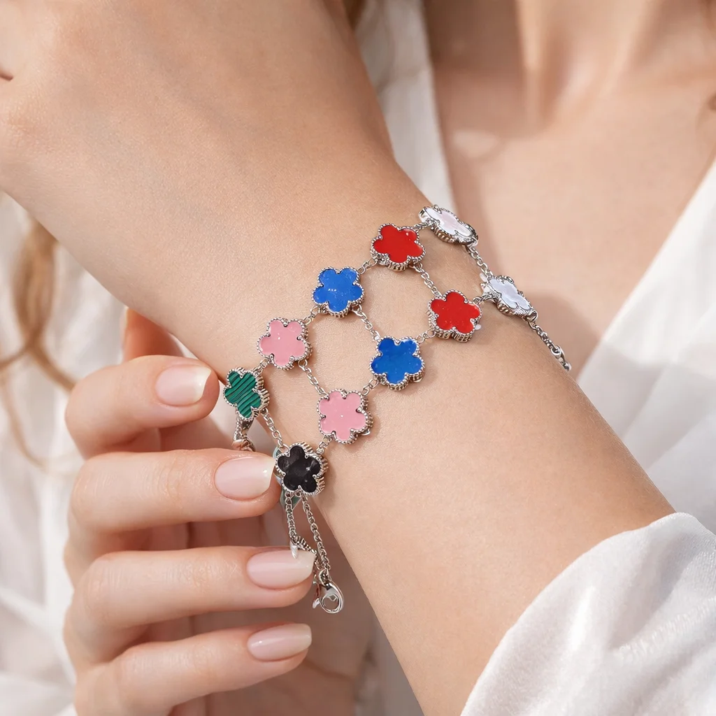 Clover Charm Bracelet / Flower Link Bracelet