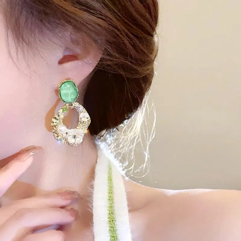 Vintage Style Stainless Steel Jewelry Drop Earrings Square Zircon Flower Pearl